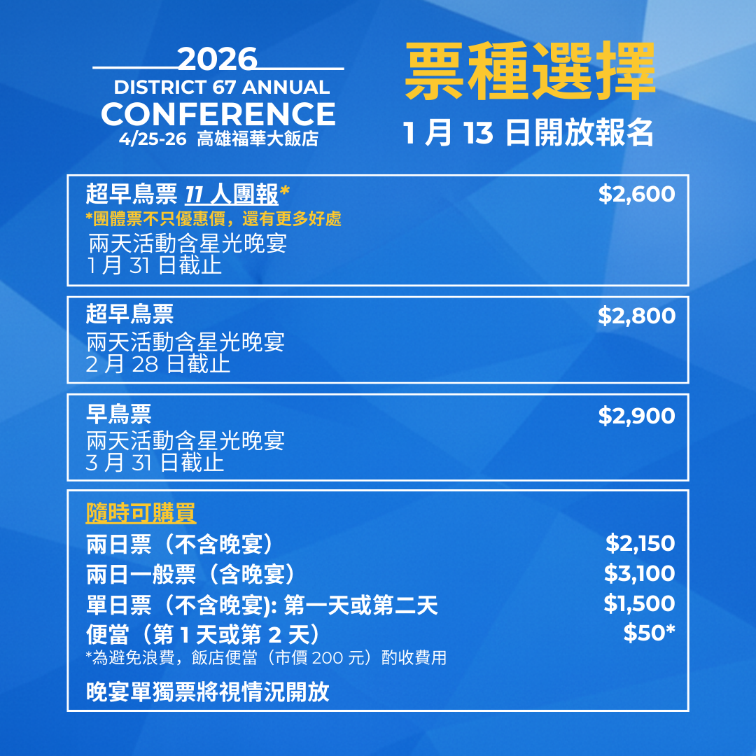 D67 2026 年度大會 高雄福華大飯店 4/25-26
