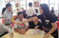 中和兄以天堂演講會的笑話揭開序幕,稟彬、祚苑、宜豪、慧芳的笑話也都圍繞著「天堂」這個主題。中和兄不愧是演講會的老將,收場的壓軸笑話讓大家笑到不行,大拍桌子叫好。「老馬有兩位太太,每天晚餐後,會以暗號來宣佈今晚將在哪兒過夜。大老婆是「米酒」,二老婆是「啤酒」。但是一天過了又一天,每晚老馬只點啤酒。終於有天,大老婆光火了,向老馬嗆聲:「米酒作啥用?難不成用來請客嗎?」