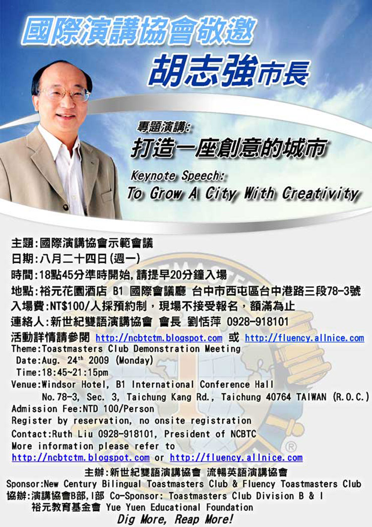 | 協辦: | 國際演講協會B部和I部,裕元教育基金會 |
