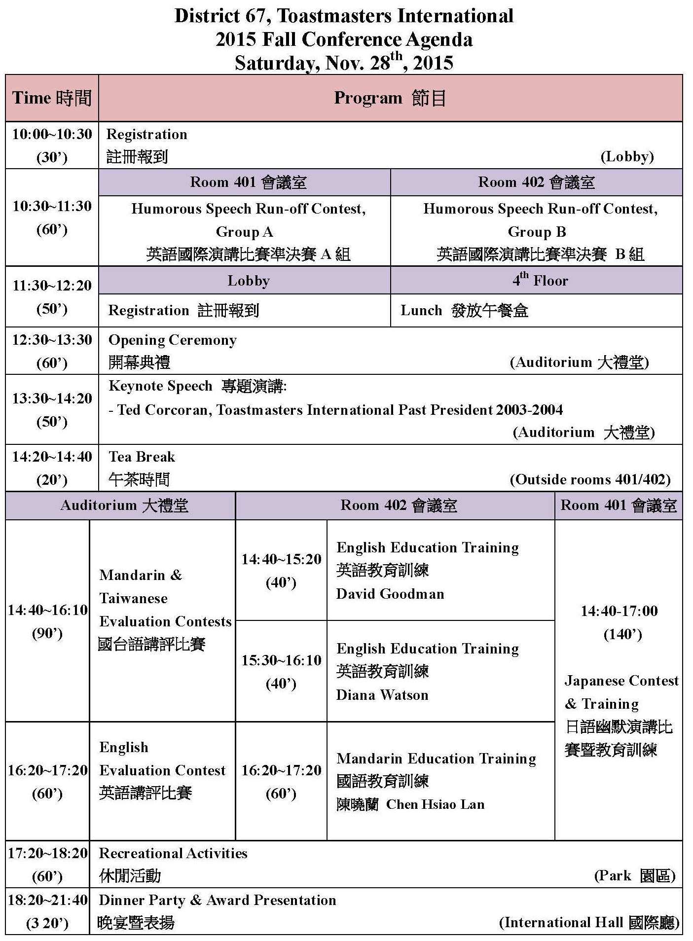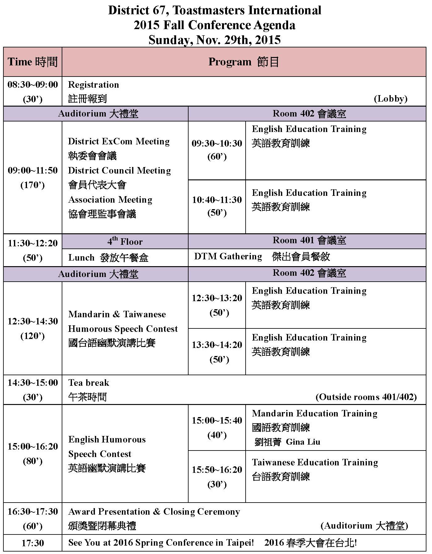 2015年秋季大會節目表