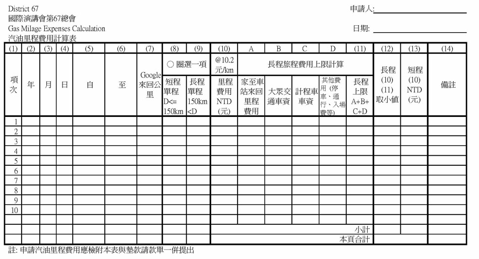 汽油里程費用申請表