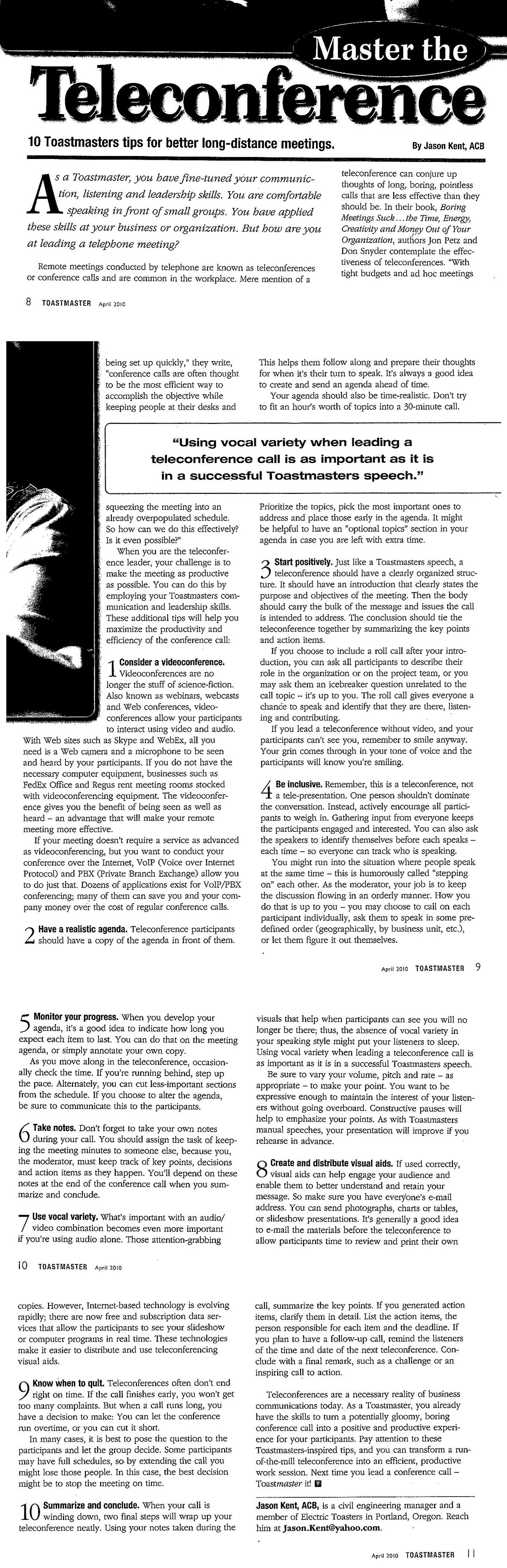 Master the Teleconference 作者:Jason Kent |